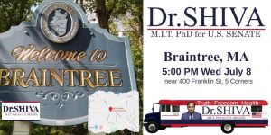 Meet Dr.SHIVA and the Shiva 4 Senate campaign team at Braintree. Get lawn signs & bumper stickers!!