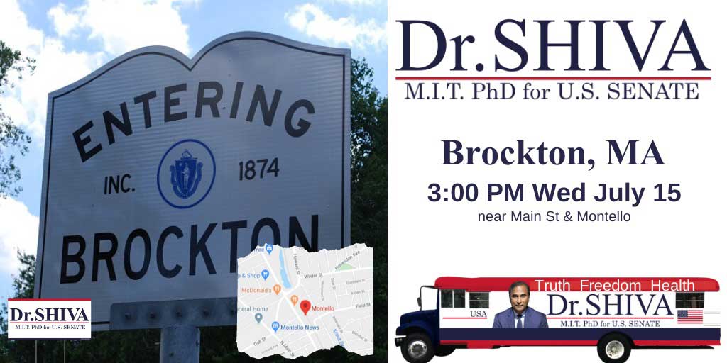Meet Dr.SHIVA and the Shiva 4 Senate campaign team at Brockton. Get lawn signs & bumper stickers!!