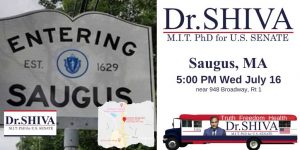 Meet Dr.SHIVA and the Shiva 4 Senate campaign team at Saugus. Get lawn signs & bumper stickers!!