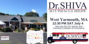 Meet Dr.SHIVA and the Shiva 4 Senate campaign team at West Yarmouth. Get lawn signs & bumper stickers!!