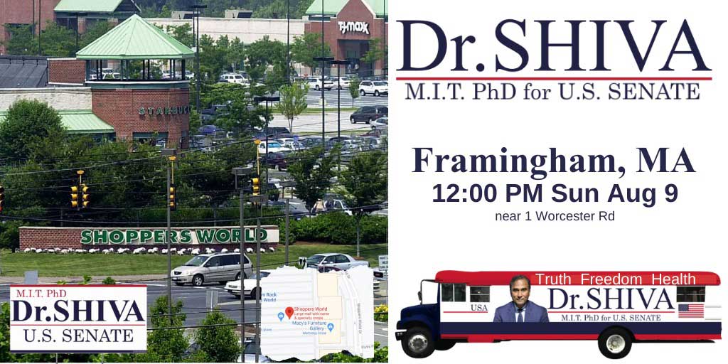 Come meet Dr. SHIVA, and pick up lawn signs and bumper stickers. Vote for Dr.SHIVA September 1 to WIN Truth Freedom Health.