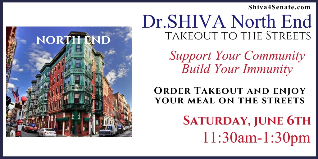 Join Dr.SHIVA, volunteers, supporters and Massachusetts citizens, starting at 11:30 am, as we order takeout from the North End restaurants and enjoy our meal on the streets. Support Your Community, Build Your Immunity! The following restaurants, based on current information, will be offering take out: