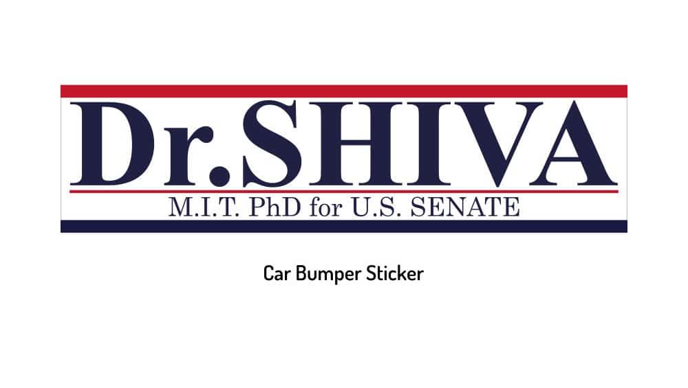 Get the Dr.SHIVA Bumper Sticker and show your support for the Shiva 4 Senate campaign. Price includes shipping.